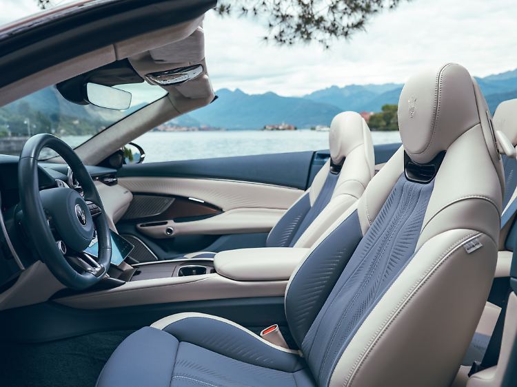 Das erste vollelektrische Viersitzer-Cabrio rollt also bald zu den Kunden und konnte jüngst von ntv.de gefahren werden. Also keine graue Theorie, sondern in diesem Fall "Rose Gold" gewordene Realität. Dieser golden-kupferfarben schimmernde Lifestyle-Lackton fällt jedenfalls auf. Mehr als der Raumschiff-Sound dieses Stromers, der offenbar auch nach außen strahlenden Lautsprecher. Ist überflüssig, aber Geschmäcker sind bekanntermaßen verschieden. So verschieden, dass Maserati auch den Verbrenner weiterhin im Angebot behält (hierzu später mehr).