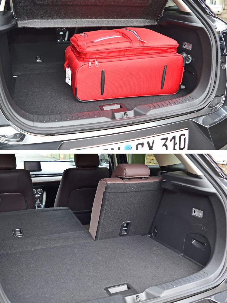 Wer sich für das Automatikgetriebe im kleinen SUV entscheidet, der bekommt einen radargestützten Tempomaten, der den Abstand zum Vordermann automatisch hält. Ein gerade auf langen Autobahnstrecken sehr nützliches Feature. Und langstreckentauglich sind beide Mazda, was nicht zuletzt auch an den gut ausgeformten Polstern und an einem nicht üppigen, aber für die Segmentverhältnisse passablen Kofferraum liegt. Der Mazda CX-3 offeriert 350 bis 1260 Liter, beim Mazda2 sind es 280 oder bei umgelegter Rücklehne 950 Liter. Da die Nummer 2 aber doch eher ein Stadtflitzer ist, haben die Japaner sich noch ein sehr nützliches Feature einfallen lassen. Wenn der Fahrer nämlich im Rückwärtsgang unbedacht auf ein Hindernis zusteuert, wird eine automatische Notbremsung eingeleitet. Beulen im Heck sollten so der Vergangenheit angehören.