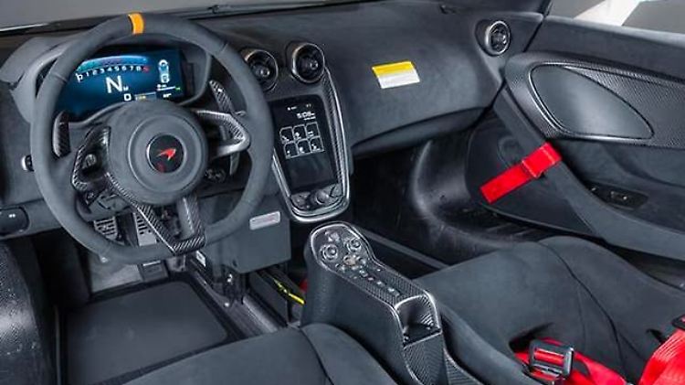 Im Innenraum gibt es zwei leichte Carbonschalensitze mit Sechspunktgurten. Auch andere Teile wurden aus Sichtcarbon gefertigt. Die Türen ziehen Insassen mit Textilschlaufen zu. Annehmlichkeiten wie etwa Teppiche, Klimaautomatik, Audiosystem oder ein Handschuhfach wurden weggelassen. Diese für Extras kann man jedoch ohne Aufpreis dazu bestellen.
