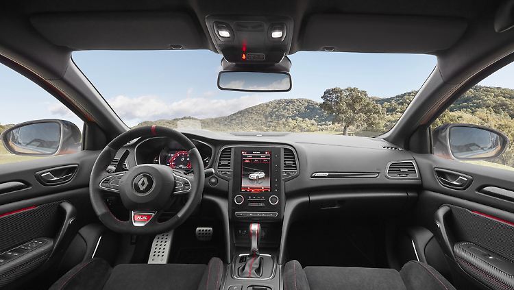 Die Qualität der Sportsitze offenbart sich in Bereichen der Querdynamik, die im täglichen Straßenverkehr nur selten anzutreffen sind. Die Schalen sind gut ausgeformt und seitenstabil, was man von den hinten Plätzen leider nicht behaupten kann. Allerdings sind dort Bein- und Kopffreiheit beachtenswert, die Sicht ist eher mäßig. Zum Paket aus Turbokraft, präziser Lenkung, sportlichen Motorsound und erstaunlich gut ausbalanciertem Fahrwerk erwirbt der Kunde in Deutschland noch eine mitlenkende Hinterachse, die Wahlmöglichkeit zwischen fünf verschiedenen Fahrmodi, eine R-Link-Multimedia-Anbindung des Infotainment-Systems, Head-Up-Display, Brembo-Bremsen und einen RS-Monitor für Fahranalysen.