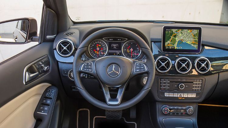 Das Interieur wirkt vertraut, die Bedienelemente sind typisch Mercedes. Die leicht erhöhte Sitzposition ermöglicht sowohl einen leichten Ein-und Ausstieg als auch eine gute Rundumsicht. Die Sitze sind angenehm straff gepolstert und geben einen guten Halt. Am Raumgefühl gibt es nichts auszusetzen und wer die B-Klasse als Transporter für Einkäufe oder Freizeitaktivitäten nutzen möchte, kann dies getrost tun. Das Ladevolumen beträgt zwischen 488 und 1547 Litern.