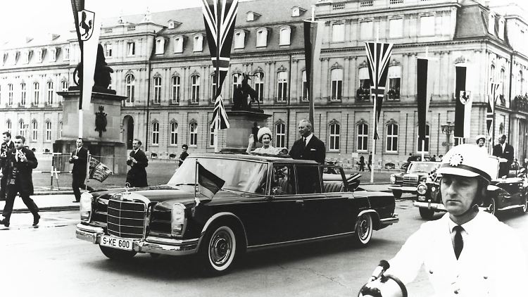 Während ihres Staatsbesuchs in Deutschland 1965 wurde Queen Elizabeth II. standesgemäß chauffiert - im Mercedes-Benz 600 Landaulet.