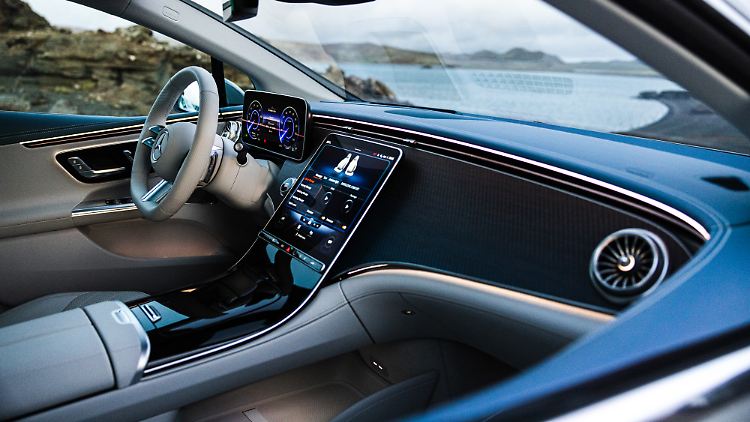 Innen überzeugt das Niveau sowieso: Das Raumgefühl ist noch luftiger als in einer E-Klasse, die Materialien sind im Sicht- und Tastbereich hochwertig und kontrastieren mit ihrem klassischen Luxus-Look die moderne Bildschirmlandschaft. Im Testwagen war die Standardvariante mit Digital-Instrumenten und großem Hochkant-Bildschirm in der Mittelkonsole montiert. Optional gibt es den sogenannten Hyperscreen, der sich über das komplette Armaturenbrett bis zum Ende der Beifahrerseite zieht. Die Zusatzfläche vermisst man allerdings nicht, auch die kleine Variante überzeugt mit hübscher Optik, der seltenen Kombination aus überbordender Funktionsvielfalt und einfacher Bedienung sowie sehr zackiger Performance.