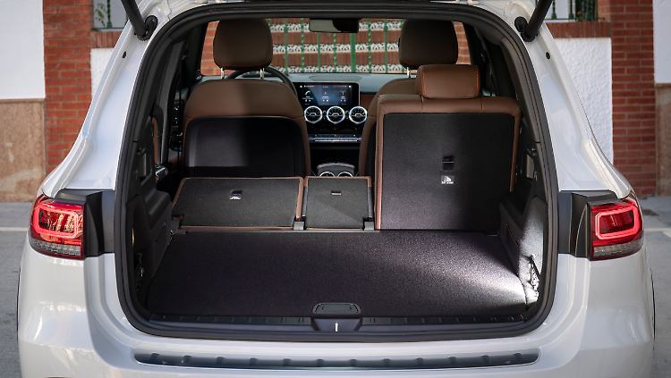 Doch wie dem auch sei, der GLB zeigt sich in Gänze als Raumriese. Denn auch der Kofferraum bietet mit 570 bis 1805 Litern ausreichend Stauraum für alle Belange. Hier profitieren sowohl der Ladefreund als auch die Passagiere auf den hintersten Plätzen von dem hohen Heckabschluss. Beim Siebensitzer können im Übrigen an den Isofix-Vorrüstungen bis zu vier Kindersitze befestigt werden. Um bei voller Besatzung Ordnung zu halten, hat Mercedes beim GLB mit vielen praktischen Ablagen für Ordnung gesorgt. Zum Beispiel gibt es auf Wunsch Fächer in der Bordkante, links und rechts in der Verkleidung des Kofferraums, Taschen- und Kleiderhaken an der Unterseite der Heckklappe sowie einen zweifach in der Höhe verstellbaren Laderaumboden.