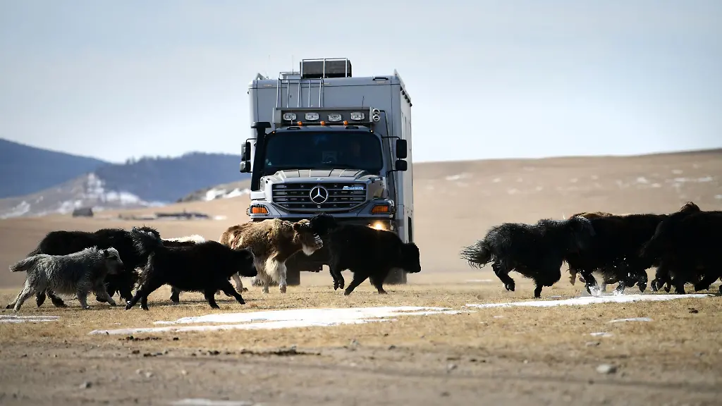 Dann nämlich verliert selbst das am wenigsten dicht besiedelte Land der Welt, das wir vor allem aus den Erzählungen Marco Polos kennen, seinen Schrecken. Auch wenn es dort auf mehr als viermal so viel Fläche wie Deutschland weniger asphaltierte Straßen gibt als in Berlin. Weder die spärliche Infrastruktur noch die Temperaturen zweistellig unter null können einem die Urlaubsfreude vermiesen und wo andere noch nach der Straße suchen oder vergebens auf den Winterdienst warten, fährt der Zetros einfach weiter.