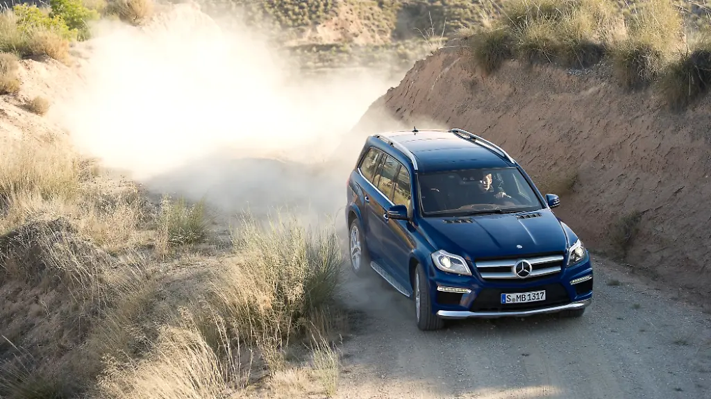 Was der GL im Alltag kann, klärt eine erste Testfahrten in New Mexico/USA. 308 Zentimeter Radstand künden von viel Raum im Full-Size-SUV. Und tatsächlich bietet der GL relativ viel Platz auf allen Sitzen. Ganz hinten halten es jetzt sogar größere Kinder aus. Serienmäßig lässt sich die dritte Sitzreihe elektrisch vor- und zurückklappen. Und mit bis zu 2300 Liter Volumen bietet der GL einen der größten Laderäume seiner Klasse. Das Interieur ist im typischen Mercedes-Stil eingerichtet, mit Liebe zum Detail, zwar nur optional mit feinstem Leder, immer aber mit einem Cockpit, das sich trotz vieler Schalter und Funktionen übersichtlich präsentiert.