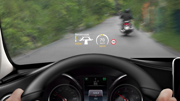 Eine neue Wertanmutung erfährt die neue C-Klasse auch durch die Übernahme von Schalterelementen wie Fensterheber und Drehsteller für das Licht aus der S-Klasse. Auch die schwarzen Hochglanz-, Echtmetall- und Galvanik-Oberflächen sowie die individuellen Innenausstattungen sind dem Oberhaus entlehnt. Erstmals wird es in der C-Klasse auch ein Head-up-Display in Vollfarboptik geben. Das virtuelle Bild wird mit Hilfe von High-Power-LEDs in einer Größe von 21 mal 7 Zentimetern in das Sichtfeld des Fahrers projiziert, wo es in etwa zwei Meter Entfernung über der Motorhaube zu schweben scheint. Zu sehen sind dort Daten über die Geschwindigkeit, Tempolimits, Navigationsanweisungen und Hinweise von Fahrassistenzsystemen.