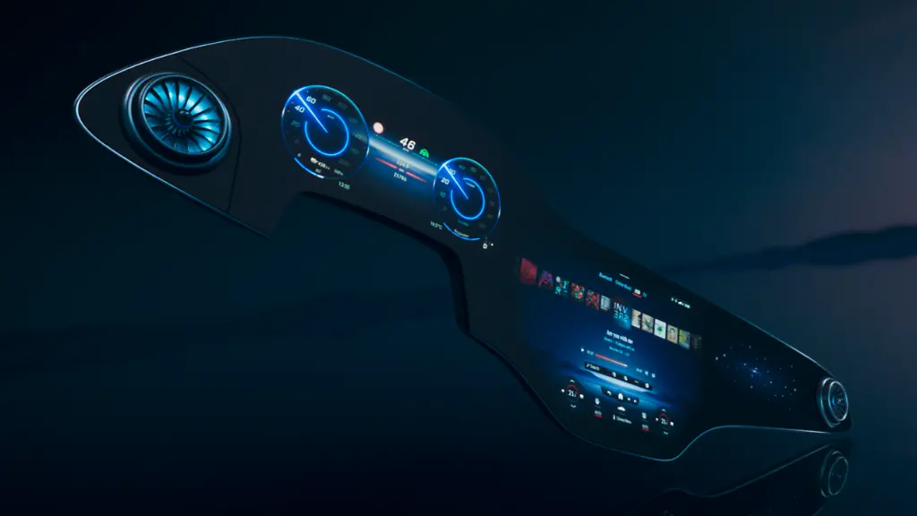 Gesteuert wird die Darstellung auf den drei Bildschirmen über die neueste Ausbaustufe des bereits 2018 auf der CES präsentierten und erstmals in der Mercedes A-Klasse eingeführten MBUX-Bediensystems. Künstliche Intelligenz soll dabei eine Überfrachtung der Bildschirmgrafik verhindern und dem Fahrer immer die passenden Funktionen anbieten. Wie bereits im Vorgängersystem ist die Software in der Lage, sich wiederholende Ereignisse zu speichern und zur Routine zu machen.