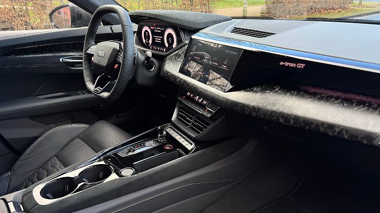 Durchaus extravagant haben die Architekten den Innenraum des E-Tron GT gestaltet. Das leuchtende Emblem sieht cool aus, die Deko-Auswahl ist Geschmacksache.