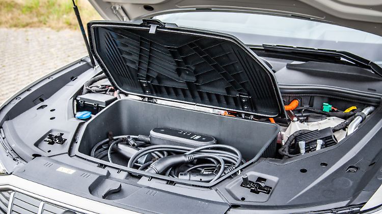 Das Ladekabel befindet sich beim Audi E-Tron in einem Extrafach unter der Motorhaube.