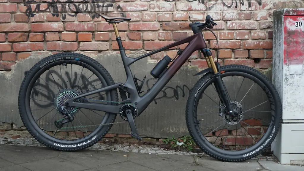 Selbst die Schneedecke, in die sich das Profil der Reifen gräbt, verursacht nur dort leichten Schlupf, wo Vereisung lauert. Dann geht's kurvig bergab: Die äußeren Stollen sorgen für weitreichenden Halt, während das Zusammenspiel von Federn und Dämpfer harmonisch wirkt. Weder federt die Gabel zu langsam aus noch ist der der Dämpfer am Hinterbau zu behäbig. Aber auch beim Teuer-Bikes wirkt die Physik, wenn die Reifen auf feuchten Wurzeln oder Steinplatten seitlich wegrutschen. Dafür rotieren die Carbon-Räder sehr leichtgängig.