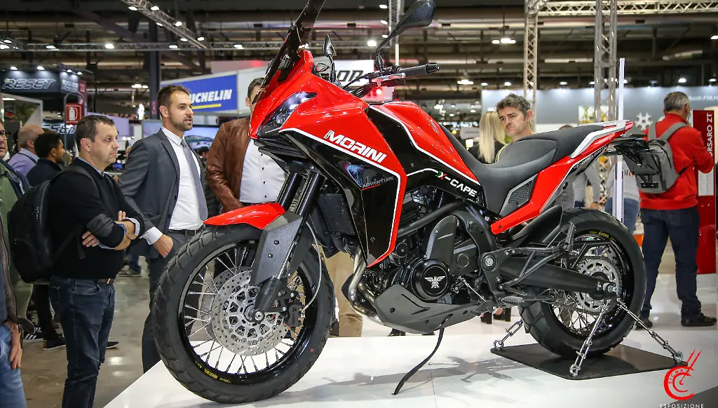 Technisch auf gleicher Basis wie die 6½ setzt die Reiseenduro X-Cape auf, die sich durch vergleichsweise lange Federwege, Unterfahrschutz und eine wuchtige Frontverkleidung mit verstellbarem Windschild auszeichnet. Auch hier gibt es LED-Lichter und zudem ein großes Farbdisplay im Cockpit. Technische Details, einen Preis sowie den konkreten Marktstarttermin bleibt Moto Morini schuldig.