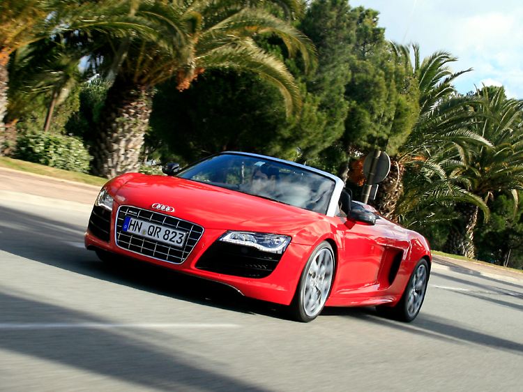 Klarer kann man eine Verwandtschaft nicht dokumentieren: Audi, zu 100 Prozent Eigentümer der Sportwagenschmiede Lamborghini, nennt seinen exklusivsten und schnellsten Zweisitzer "Spyder" - genauso wie die Italiener ihre Produkte. Das ist konsequent, denn auch die zwischen den Achsen eingebauten V10-Motoren können nur Fachleute voneinander unterscheiden.