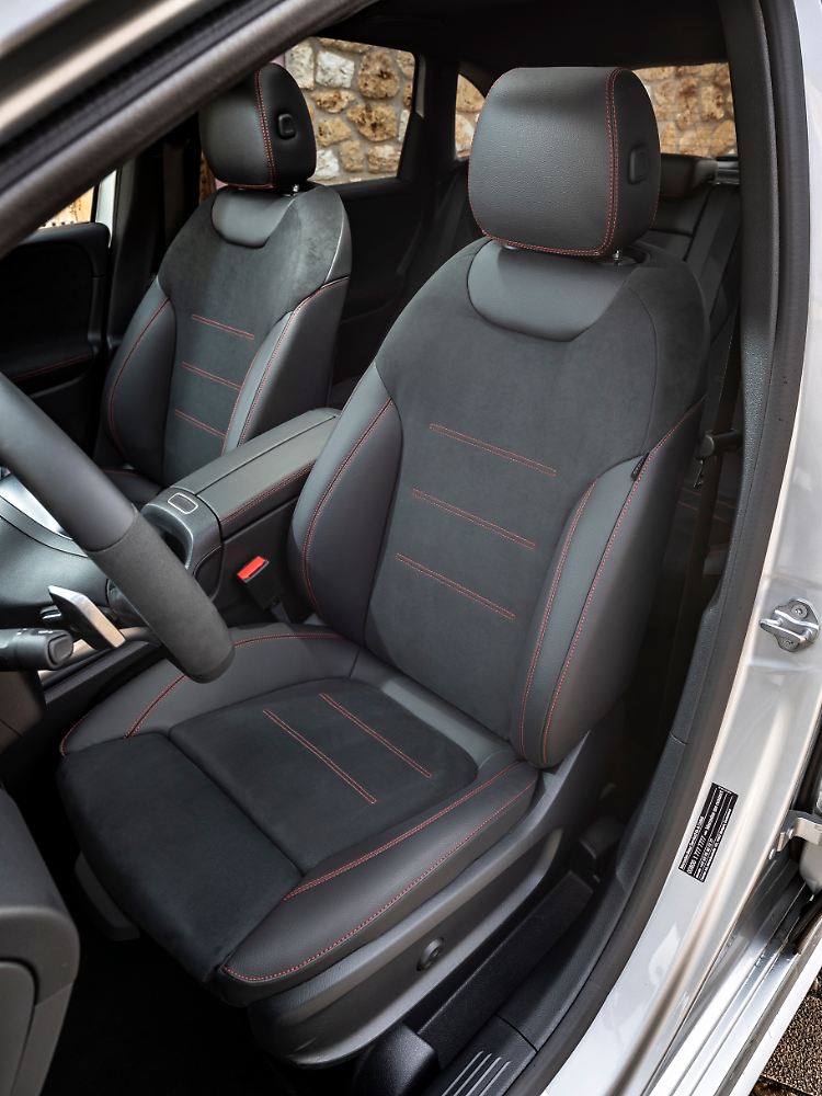 Zum Komfort gehören auch die Assistenten, die in der B-Klasse unterdessen auf dem Niveau einer S-Klasse sind. Dazu gehören nicht nur verbesserte Kamera- und Radarsysteme, die bis zu 500 Meter vorausschauen können. Das System kann noch mehr: Mithilfe der Navi-Daten und dem Abstands-Assistenten kann die Geschwindigkeit beim teilautonomen Fahren an Kurven, Kreuzungen und Kreisverkehren automatisch angepasst werden. Serienmäßig an Bord ist der erweiterte aktive Bremsassistent, der durch einen sehr effektiven Bremseingriff hilft, Auffahrunfälle mit vorausfahrenden Fahrzeugen zu vermeiden. Das System erkennt selbstverständlich auch Fußgänger und Radfahrer. Die Gefahrenbremsung ist allerdings auf 50 km/h und damit auf den Stadtverkehr beschränkt.