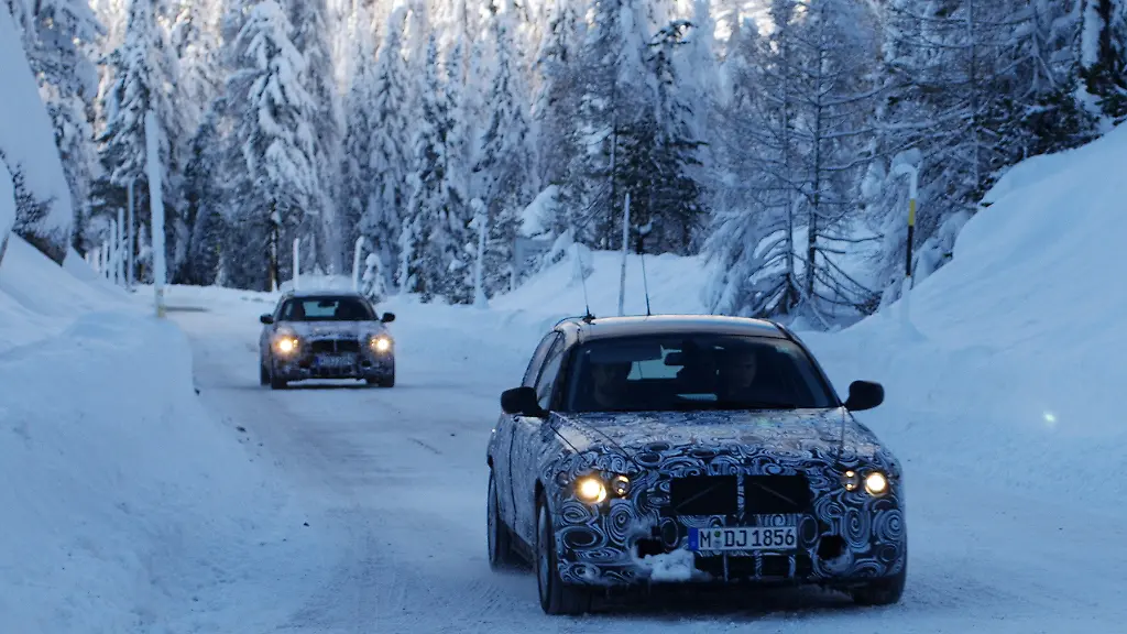 Pass rauf, Pass runter – als Testfahrer hat man es auch nicht immer leicht. Obwohl die verschneite Landschaft wunderschön und der Ausblick auf die Gipfel der Dolomiten atemberaubend ist. Doch die BMW-Leute sind nicht zum Spaß dort. Ein knallhartes Testprogramm wartet auf die Autos, denn die verschneiten Straßen bergen so manche Tücke für Fahrwerk und Antrieb.