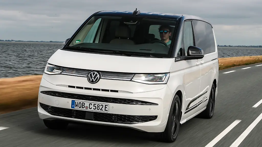 Zusammen beschleunigen die Motoren den 2,2 Tonnen schweren Multivan in 8,9 Sekunden aus dem Stand auf 100 km/h. Der Allradantrieb mit elektrischer Heckachse funktioniert bis Tempo 130 km/h. Darüber hinaus arbeitet nur der Hybrid-Motor in der Front. Der Multivan kann bis zu 200 km/h schnell fahren.