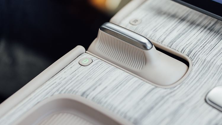 Der Fahrmodus-Hebel ist ein kleiner Wippschalter. Zieht man ihn zu sich, fährt der ET7 vorwärts. Schiebt man ihn nach vorne, ist der Rückwärtsgang eingelegt.