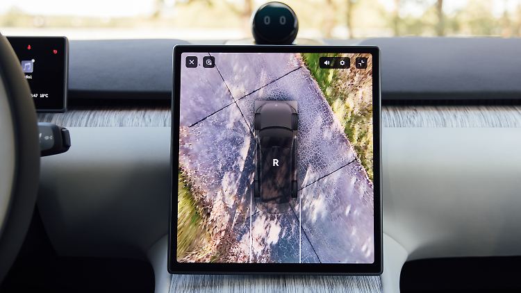 Dank diverser Kameras kann der Rechenhirn eine Vogelperspektivenansicht von Fahrzeug und Umgebung auf das große Display zaubern.