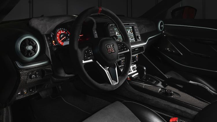 Aber auch innen haben sie Hand angelegt und überall dort, wo bislang billiger Kunststoff prangte, schmuckes Leder vernäht oder Konsolen aus Karbon eingebaut. Das sind sie dem Preis schon schuldig. Doch weil das Cockpit unverändert bleibt und mit ihm der riesige Touchscreen mit den viel zu vielen Anzeigen, wirkt der GT-R noch immer wie ein Fahrsimulator für die Playstation. Zumindest bis man den Motor anwirft und einen das Brüllen der armdicken Endrohre ins Hier und Heute zurückruft.