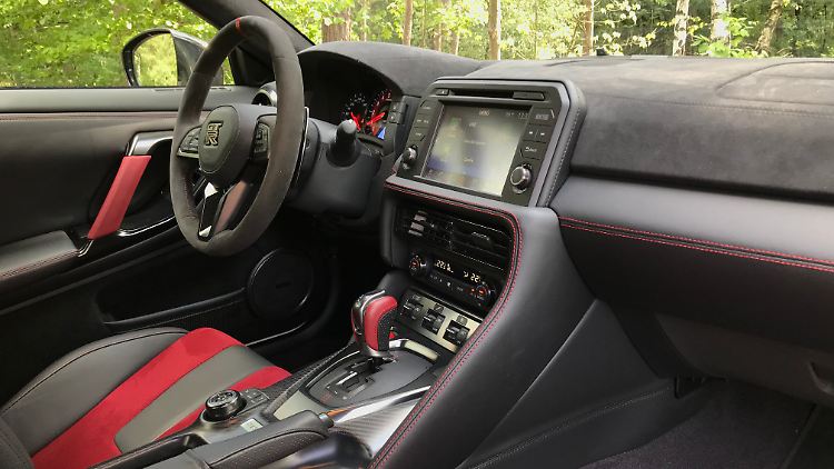 Beim Umstieg in den ungleich bulliger aussehenden GT-R Nismo zeigt sich nur eine Übereinstimmung: Man blickt auf exakt gleich gezeichnete GT-R-Letter auf dem Lenkrad-Pralltopf. Wo beim Skyline Neunziger-Flair herrscht und es drei Zusatzinstrumente für Ladedruck oder Öltemperatur gibt, zeigt sich das Cockpit des GT-R Nismo auch nicht mehr ganz dem Zeitgeist entsprechend. Bildschirm, ja klar - aber nicht Up-to-Date in puncto Größe und Reaktionsgeschwindigkeit. Zahlreiche markante physische Schalter, mit denen Nordschleifen-Profis ihr optimales Setup von Motor und Fahrwerk konfigurieren, springen den Fahrer hingegen regelrecht an. Mit 1,90 Meter Breite kommt der GT-R Nismo ganz schön bullig daher und fährt sich gefühlt recht ausladend - nichts für enge Gassen und hohe Bordsteine.