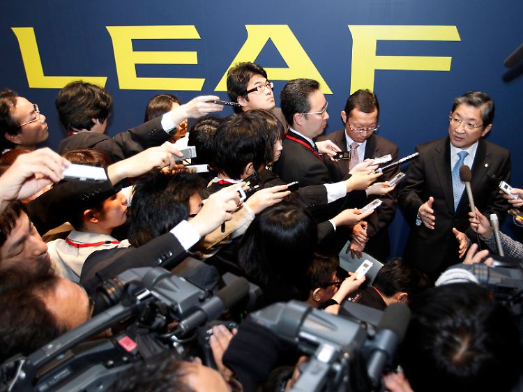 Ob der Run auf den neuen "Leaf" so groß sein wird, wie der hier auf den COO von Nissan, Toshiyuki Shiga?