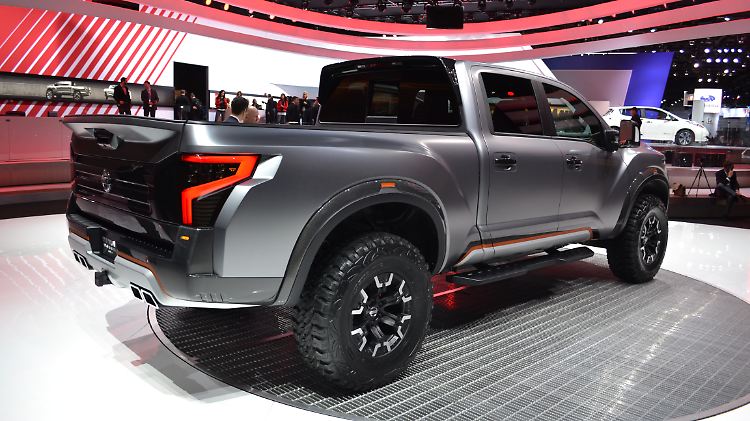 Dass die Japaner Kampfgeist haben, ist bekannt. Vielleicht gerade deshalb hat Nissan in Detroit auf der Basis des Titan XD das Konzept eines Pick-up-Kriegers vorgestellt, der mit aller Wucht gegen den Klassenprimus Ford Raptor oder den Dodge Ram Rebel anfahren könnte. Mit 6,20 Meter Länge und einer Breite von 2,20 Meter stemmt sich der Japaner auf 37-Zoll großen Offroad-Reifen in den Sand. Um das martialische Aussehen noch zu verschärfen, wurde die Studie in Mattgrau lackiert – die Farbe nennt sich Thunder - und mit einer Kriegsbemalung in Orange und Schwarz akzentuiert.