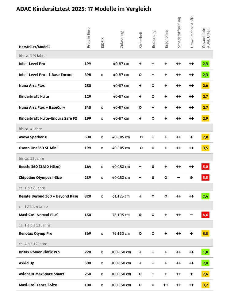Der ADAC betont, die Prüfmaßstäbe lägen bewusst über den gesetzlichen Mindestanforderungen, um den Schutz auch bei schwereren Unfällen abbilden zu können. Eltern sollten Sitze im Fachhandel ausprobieren, den Einbau im eigenen Auto testen und die Bedienung sicher beherrschen - falsch montierte Systeme verlieren ihre Schutzwirkung.