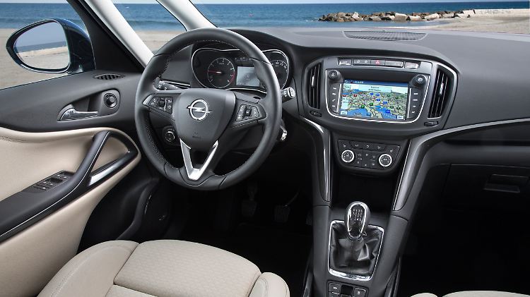 Ganz und gar nicht alt ist der Innenraum mit neuem Cockpit-Design. Vor allem ergonomisch hat sich Opel einiges einfallen lassen. Saß der Monitor des Infotainment-Systems bisher auf der Mittelkonsole, wurde es jetzt durch einen Touchscreen ersetzt und etwas tiefer integriert. Das hat den positiven Nebeneffekt, dass im Zafira die Knopfflut verebbt ist. Durch den vollverzinkten Rahmen wirkt der Sieben-Zoll-TFT wie ein Tablet und soll sich auch genauso intuitiv bedienen lassen.