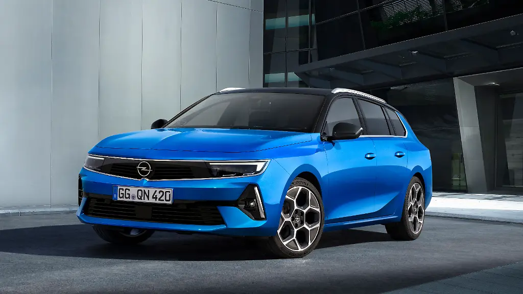 Die jetzt debütierende neue Astra-Kombi-Generation ist die erste, die Opel als PSA-Mitglied und Teil des Stellantis-Konzerns vorstellt. Dass der Peugeot 308 SW ein enger Verwandter des Astra Sports Tourer ist, bemerkt man zumindest nicht auf den ersten Blick. Der Kombi mit dem Blitz trägt das neue Vizor-Gesicht, fällt mit seinen LED-Leuchten auf und ist bis zur B-Säule mit dem Fünftürer identisch.