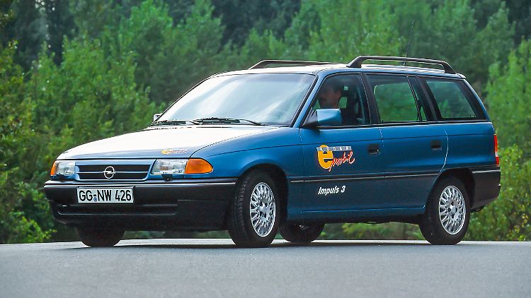 1990: Der Opel Impuls I basiert auf dem Kadett E und wird von einem 16 kW starken Gleichstrom-Nebenschlussmotor angetrieben. Die Batterien verfügen über Nickel-Kadmium-Zellen. Beim Opel Impuls II auf Astra Caravan-Basis versorgen 32 Blei-Säure-Batterien zwei Drehstrom-Asynchron-Motoren (zusammen 45 kW/61 PS) mit Energie