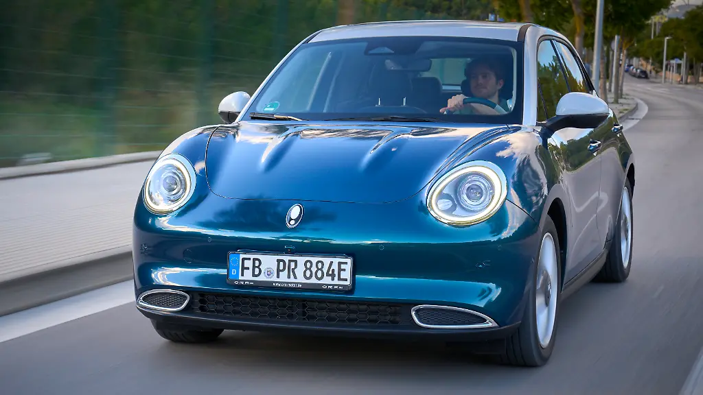 Man sollte den neuen Spieler also durchaus ernst nehmen. Der erste Test-Auftritt des Ora macht nämlich schon optisch neugierig. Gutmütige Kulleraugen, leicht abfallendes Dach, das in einem Bürzel oberhalb der Heckscheibe endet. Am unteren Rand des Fensters sind Rück- und Bremsleuchten versteckt. Die pfiffige Lösung wird wohl zu einem der Erkennungszeichen des Neulings. Das Ganze ist ein Kompaktwagen im 4,20-Meter-Format des als Rivalen ausgerufenen VW ID 3.