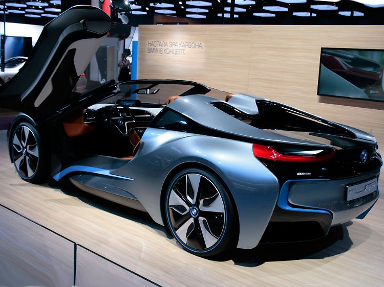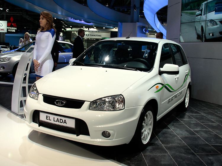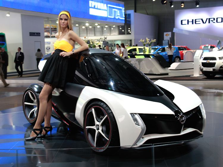 Unfair wäre die Behauptung, dass die umweltgerechte Fortbewegung in Moskau keine Rolle spielte. Doch wie in anderer Hinsicht auch, spiegelt die Show bei der Elektromobilität Extreme wider. BMW hat die Spyder-Version seines Elektro-Sportwagens i8 Concept aufgefahren, der Sportwagen-Leistungen ohne schlechtes Öko-Gewissen verspricht. Ein paar Meter weiter ringt ein kleiner Lada um Aufmerksamkeit, der ebenfalls abgasfrei fährt. Der Kleinwagen basiert auf dem aktuellen Modell Kalina. Laut Hersteller soll er mit einer Batterieladung – für die etwa acht Stunden Ladezeit benötigt werden – maximal 150 Kilometer weit kommen. Die erzielbare Höchstgeschwindigkeit beträgt 130 km/h.