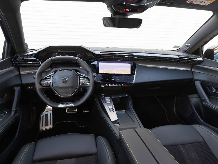 Das Cockpit ist im Peugeot-Stil mit kleinem Lenkrad und aufgesetzten Instrumenten gehalten.