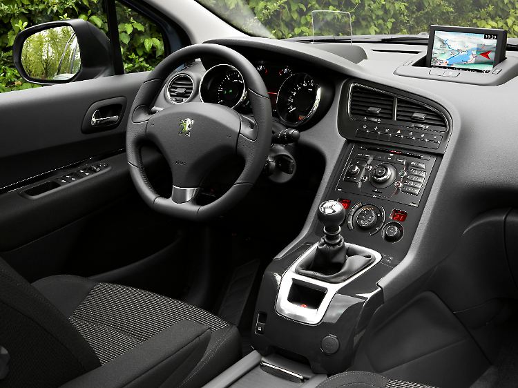 Den Innenraum dominiert ein elegant-seriöses Design. Das Cockpit wird durch zwei große runde Instrumente bestimmt, die den Bordcomputer einfassen. Die Mittelkonsole ist übersichtlich. Ansonsten ist alles auf Platz ausgelegt. Peugeot will mit vielen Aufbewahrungsmöglichkeiten Flexibilität bieten. Neben einer Ablage unter dem Lenkrad und großen Seitenfächern hält die auf Wunsch mit einer USB-Schnittstelle gelieferte Mittelkonsole noch einmal 10,5 Liter belüfteten Stauraum bereit. Im hinteren Bereich stehen unter anderem Stauflächen im Fußraum zur Verfügung, wobei ein Blick ins Innere derselben die Frage aufwirft, was dort deponiert werden soll, da sie doch recht klein und flach ausfallen.