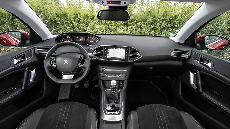 Sparsam geht es im Innenraum des 308 zu. Hier wurde auf alles Überflüssige verzichtet. Vor allem auf die altbekannte, mit Knöpfen und Schaltern überladene Konsole. So gibt sich das Cockpit absolut minimalistisch. Außer dem weiß umstrahlten Drehregler für die Lautstärke, einem verchromten CD-Schlitz und einem Tastenfeld für Warnblinker, Front- und Heckscheibenheizung, Umluftregler und Türverriegelung gibt es keine Tasten oder Knöpfe. Alle Features, selbst die Klimaanlage, werden über das schwungvoll in Chromoptik gerahmte und leicht zum Fahrer geneigte 9,7 Zoll große Display mit Touchscreen gesteuert. Das kann man mögen oder nicht, sitzt man im Peugeot 308, scheint es durchaus zeitgemäß. Obwohl, der Gewohnheit folgend, sich der Autor dieser Zeilen gewünscht hätte, dass die Steuereinheit für die Zweizonenklimaautomatik an althergebrachter Stelle in der Mittelkonsole platziert worden wäre. Aber ganz der allgemeinen Entwicklung folgend, hat Peugeot das Arbeitsumfeld des Piloten eben auch iCockpit genannt.