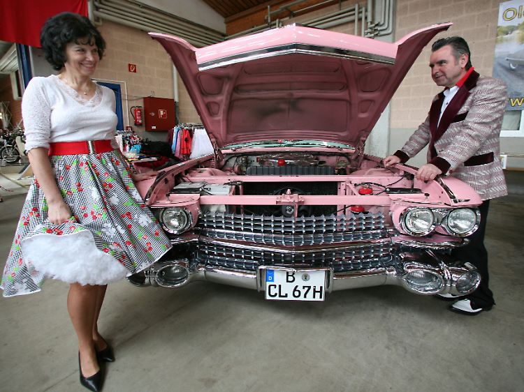 ... und einen Cadillac aus dem Jahr 1959 mit 330 PS - samt stilecht gekleideter Besitzer.