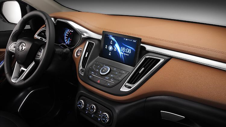 Auch ein Blick in den Innenraum lässt ahnen, dass sich die Passagiere an Bord sehr wohlfühlen könnten: Ledersitze, Startknopf, Zweizonen-Klimaautomatik, Lenkrad mit Bedienelementen und ein großer Touchscreen weisen auch auf eine zeitgemäße Ausstattung des Chinesen hin. Ansonsten sind die technischen Details zum DX7 dünn gesät. Es wäre aber überraschend, wenn unter der Haube mit den angedeuteten Powerdomes etwas anderes arbeiten würde als ein benzinbefeuerter Vierzylinder. Verbandelt ist der Motor mit einem manuellen Sechsganggetriebe. Was sicher an Bord ist, sind Features wie Stabilitätskontrolle, Überrollschutz, automatische Parksysteme, eine elektrische Heckklappe und ein Panorama-Schiebedach.