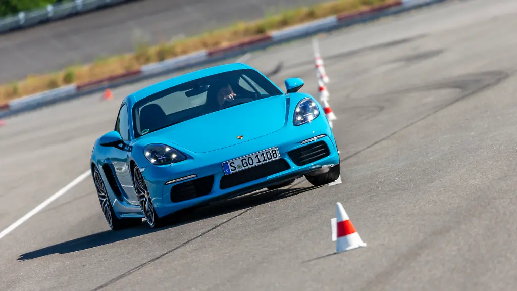 Ja, der 911er wankt, nickt und rollt. Das macht er aber mit 70 Jahren Rennsporterfahrung. Denn im Vergleich lässt er sich zwar nicht so wild herumwirbeln wie der 718, aber er zieht auf dem Treck eine extrem saubere Spur. Bleibt der Ideallinie ohne viel Zutun des Fahrers treu. Legt es auch bei Vollgas nicht darauf an, das Heck kommen zu lassen. Ja, im schlimmsten Fall rutscht ihm das kurveninnere Antriebsrad durch, weil eben keine Sperre da ist, die das Antriebsmoment synchronisiert. Am Ende möchte man meinen, hier machen sich einfach das Alter, die Erfahrung und eine gewisse Ruhe bemerkbar, die dem jungen Wilden noch abgehen.