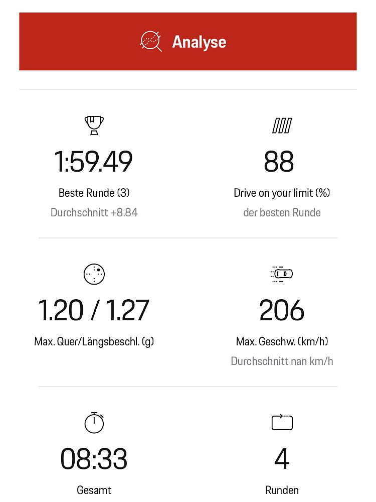 Für eine echte Analyse bedarf es natürlich einiger Runden, um den Vergleich zu haben. Auch um sich in die Details einzufuchsen, braucht es etwas Zeit. Unterhaltsamer sind da schon die Features, die es ermöglichen, das Video, das über das Smartphone an der Frontscheibe aufgezeichnet wurde, seine beste Rundenzeit oder einfach nur eine mit den entsprechenden Daten versehene Visitenkarte zu posten. Den sozialen Netzwerken sind hier keine Schranken gesetzt, das funktioniert problemlos und flächendeckend. In Summe gibt es also nicht nur einen großen Lerneffekt für den Piloten, es macht auch richtig Spaß.