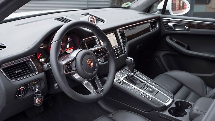 Relativ schmale, breit verlaufende Heckleuchten mit individueller Nachtgrafik runden das gelungene Gesamtbild ab. Im Gegensatz zum großen Bruder gelingt der Einstieg einfacher. Die Sitze sind rund sieben Zentimeter tiefer montiert als beim Cayenne. Das Interieur entspricht der typischen Porsche-Designsprache und bietet mit der leicht ansteigenden Mittelkonsole jede Menge Bedienknöpfe. Das Raumangebot geht in Ordnung, theoretisch ist für bis zu fünf Personen Platz im Macan, aber den Mittelplatz im Fond möchte eigentlich niemand besetzen. Das Kofferraumvolumen variiert je nach Sitzkonfiguration zwischen 550 und 1500 Litern.