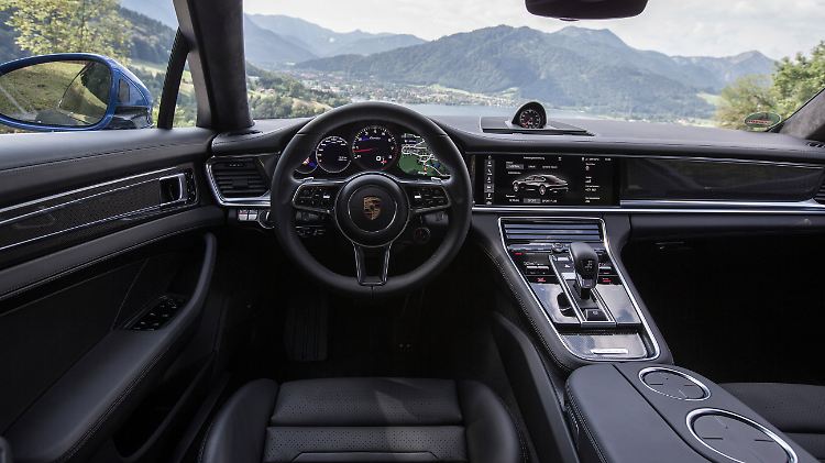 Wer den Panamera besteigt - gleich ob vorn oder hinten - wird von den Einzelsitzen förmlich angesaugt. Wobei auch Reisende mit langen Beinen ausreichend Raum finden. Platz gibt es auch hinter der Heckklappe: Bis zu 495 Liter schluckt das Gepäckabteil jetzt, 50 Liter mehr als der Vorgänger. Der Fahrer selbst blickt wie gewohnt auf den mittig platzierten, analogen Drehzahlmesser. Der wird aber im neuen Cockpit von zwei sieben Zoll großen hochauflösenden Displays flankiert, die ihn auf Wunsch mit allerlei Informationen, von der Navi-Karte bis zum G-Meter oder etwaigen Rundenzeiten versorgen. Die Mittelkonsole dominiert ein neuer 12 Zoll große Touch-Screen in zeitgemäßer Kacheloptik und mit Internetzugang.