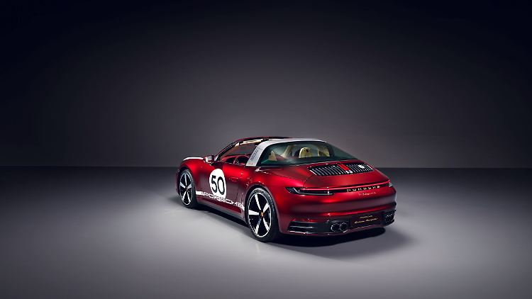 An frühe Rennsportfahrzeuge von Porsche erinnern zum Beispiel die prominent in den Flanken sichtbare Startnummer 50 samt Markenschriftzug in Weiß sowie weiße Streifen auf den vorderen Kotflügeln. Im Kontrast dazu gibt es neben vier anderen Lackvarianten exklusiv für das Sondermodell ein Kirschrot-Metallic. Wiederum eine Referenz an vergangene Zeiten sind ein goldfarben unterlegtes Markenlogo sowie goldene Schriftzüge in den B-Säulen und am Heck. Außerdem steht das Modell auf Carrera-Design-Felgen mit vorne 20 und hinten 21 Zoll Durchmesser, durch die Bremssättel in spezieller Klassik-Optik sichtbar werden.