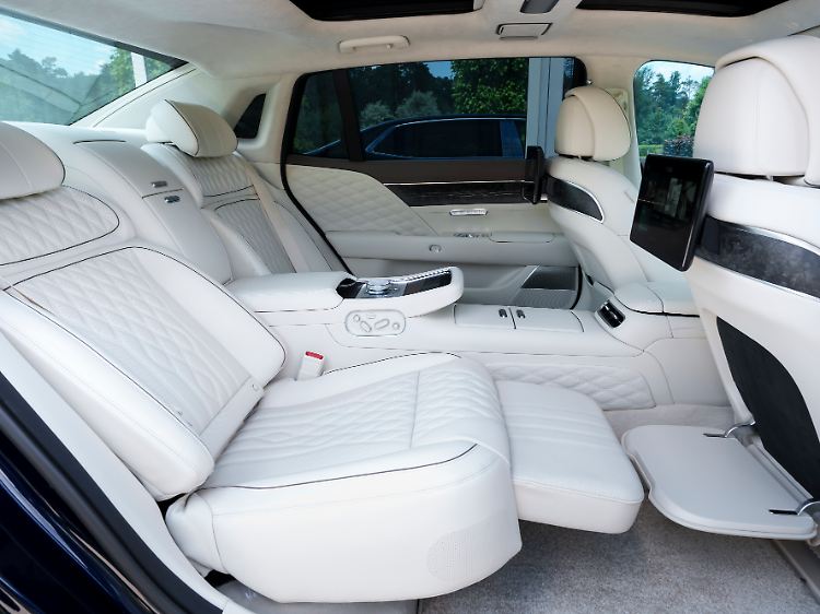 In der Langversion, die bereits der südkoreanische Botschafter in Berlin fährt, wächst der 90er gar auf 5,47 Meter und erreicht damit exakt das Gardemaß einer Maybach S-Klasse. Im Chefabteil hinten finden Konzernlenker, Promis und Politiker 19 Zentimeter mehr Beinfreiheit als in der bürgerlichen Version.