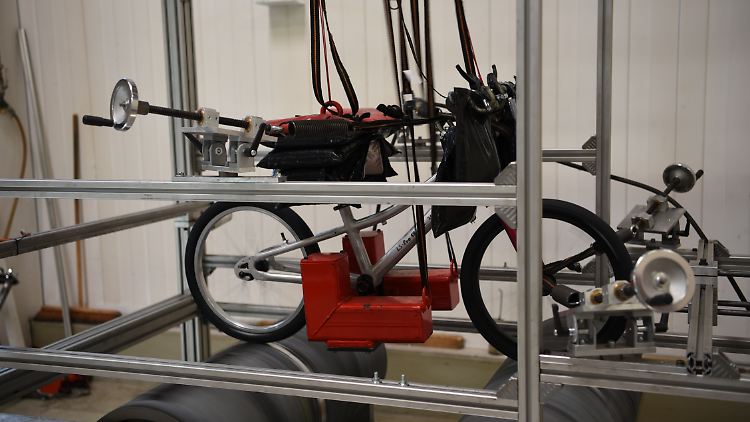 Auf dem Rollenprüfstand poltern die Räder. Tok, tok, tok. Die Rolle simuliert Bordsteinkanten. Rauf, runter, rauf, runter. Der Rahmen ist mit Sandsäcken beschwert. Stundenlang quält die Maschine das Kinderfahrrad. Erst nach einer bestimmten Abfolge der Tortur wird das Rad vermessen und genau untersucht.