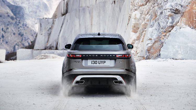 Typisch für den Velar ist das scheinbar schwebende Dach, das neben einer Sonderlackierung in Schwarz auch die Option für ein fast flächenfüllendes Panoramadach bietet. Um der Front eine SUV-typische Wucht zu geben, haben die Designer den Kühlergrill prominent vergrößert, die LED-Scheinwerfer hingegen sehr schmal gehalten. Hinzu kommen markante Lufteinlässe in den Stoßfängern und ein angedeuteter Unterfahrschutz. Am Heck sorgt eine ausgeprägte Falz für Struktur, während die verchromten Endrohre tief im Stoßfänger integriert wurden. Optisch ist der Velar wie alle Range-Rover-Modelle das blechgewordene Offroad-Versprechen mit einem entsprechenden Hauch Eleganz.