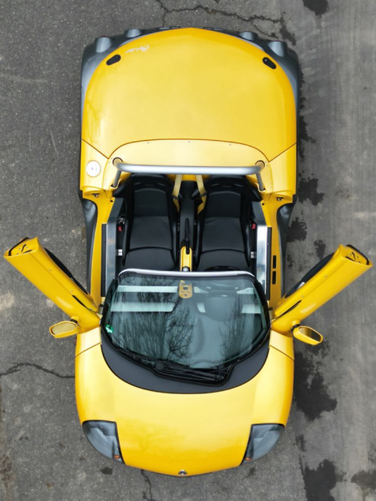 Für Musik und Heizung sorgt allein der Motor, der quer hinter den Sitzen montiert ist. Und der lässt einem beim ersten Gasstoß die Ohren klingeln und nach wenigen Minuten das Hemd am Rücken kleben. Und weil die Konstruktion weitgehend aus Aluminium und die knapp 3,80 Meter kurze und nur 1,25 Meter hohe Karosse aus Kunststoff besteht, bringt der Spider ohne Windschutzscheibe gerade mal 930 Kilo auf die Waage - und ist damit leichter als jeder Clio.