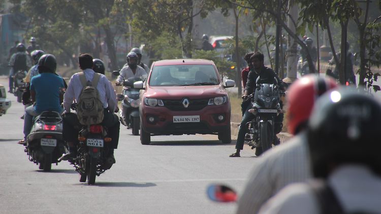 Es ist kurz nach neun und im Trident-Autohaus im Narayanapura Village in Bangalore genießen sie die Ruhe vor dem Sturm. Noch steht das gute Dutzend Verkäufer im schmucklosen Showroom beisammen im Kreis und wünscht sich im morgendlichen Team-Ritual einen erfolgreichen Tag. Doch in einer halben Stunde öffnen sie die Glastüren und der Trubel beginnt. "Seit Renault vor gut einem Jahr den Kwid auf den Markt gebracht hat, ist bei uns die Hölle los", sagt Verkäufer Pavithran, der schnell noch einen Neuwagen mit Blumengirlanden schmückt und die Übergabe vorbereitet. Schließlich ist der Autokauf noch etwas Besonderes in einem Land, in dem auf 1000 Einwohner gerade einmal 25 Fahrzeuge kommen.