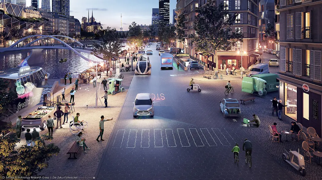 Doch zunächst klingt die Idee mit den Roboterautos vor allem für Stadtplaner sehr attraktiv. Die vernetzten Pkw fahren enger gestaffelt, als es Menschen könnten, trödeln nie, wählen automatisch und in Echtzeit die verkehrsgünstigste Route und müssen am Zielort nicht umständlich nach einem Parkplatz suchen. Am Ende läuft das allerdings auf eine Vision hinaus, wie man sie aus optimistischeren Science-Fiction-Szenarien kennt: Automatisierte Transportkapseln befördern ihre Passagiere effizient, blitzschnell und ohne Kollisionen durch die Metropolen der Zukunft.