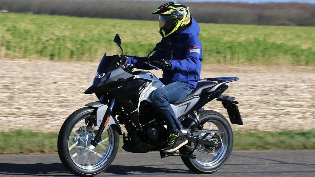Artgerecht rollt die Taiwan-125er auf ansehnlichen Speichenrädern mit CST-Gummis in leichter-Enduro-Profilierung: Vorn im 19-, hinten im 17-Zoll-Format rollen diese angenehm neutral und ohne große Geräuschentwicklung ab, verhalten sich warmgefahren bei Kurvenfahrt hinreichend präzise und vermitteln gute Agilität auch in kurz aufeinanderfolgenden Wechselkurven. Nur in kaltem Zustand irritieren sie durch ein unangenehm teigiges Fahrverhalten.