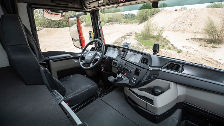 Nur gut, dass schon der kleinste Tank 390 Liter fasst. Doch wer so viel schleppt, der darf auch mal was schlucken. Und wenn der Fahrer ehrlich ist, könnte er nach dem Sandkasten-Abenteuer für die ganz großen Jungs auch mal so langsam eine Erfrischung vertragen. Nur gut, dass es neben digitalen Instrumenten, Klima und Kameras wenigstens auch ein paar Getränkehalter gibt - und auf Wunsch bestimmt auch einen kleinen Kühlschrank.